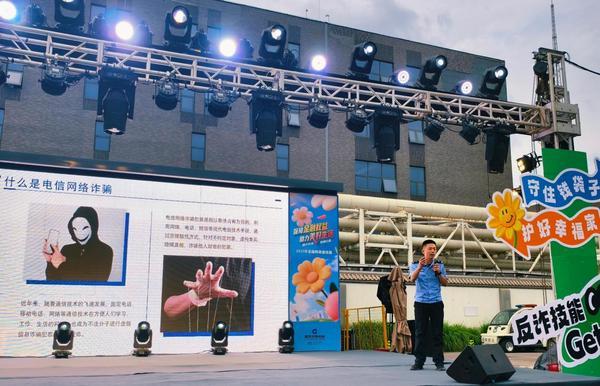 活动中,志愿者们发挥热情与创造力,献出了一次不一样的知识打开方式。志愿者们走上舞台,为观众献上幽默反诈情景剧《拼好骗》,将云养殖、百万保障、刷单返利等多种骗局在观众面前一一解构,通过诙谐的对白演绎犯罪分子的种种陷阱,向群众齐声提示“防范诈骗千万条,不贪不信第一条”。精彩的表演赢得了阵阵掌声和笑声连连,群众在开怀一笑后也将安全意识牢记心中。