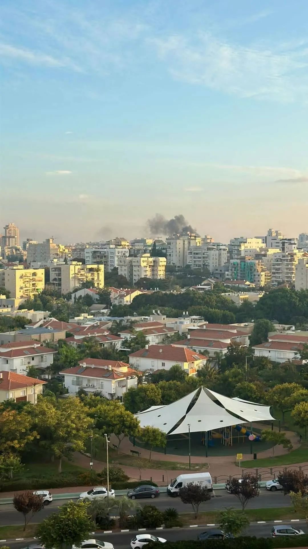 10月7日白天,以色列中部城市雷霍沃特有大楼被哈马斯的火箭弹击中 图:Yumi