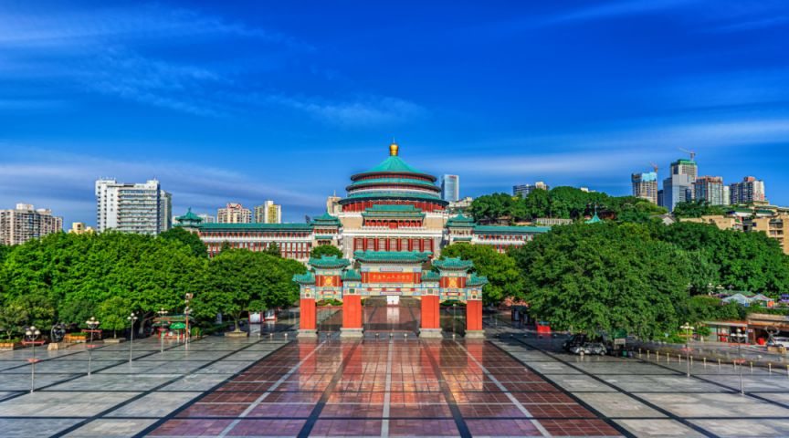 1954年4月,一座具有中国民族与地方特色、雄伟壮观、精美绝伦的建筑群体——重庆人民大礼堂,在当时的西南区首府重庆拨地而起。自此,这座中西合璧的仿明清宫殿式建筑,成为了重庆城市的地标。