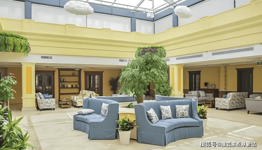 海航·和悦家国际颐养社区总建筑面积达4.2万平方米,采用“回”字形布局,以中庭花园为核心,串联活力长者区、社交共享区、高端疗养区及特殊护理区四大功能区。公共区域配备无障碍通道、扶手、休息座椅等适老化设施,1万平方米公共空间涵盖国际标准游泳池、健身房、瑜伽室、图书馆、多功能厅等,满足长者多元需求。
