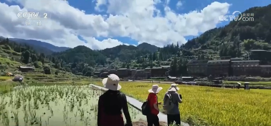 眼下,贵州黔东南州雷山县的西江千户苗寨也迎来了一年中最美的季节。稻田与吊脚楼相映成趣,吸引了不少银发一族错峰出游,来这里体验独特的苗族文化。